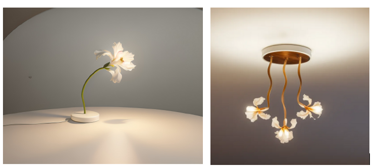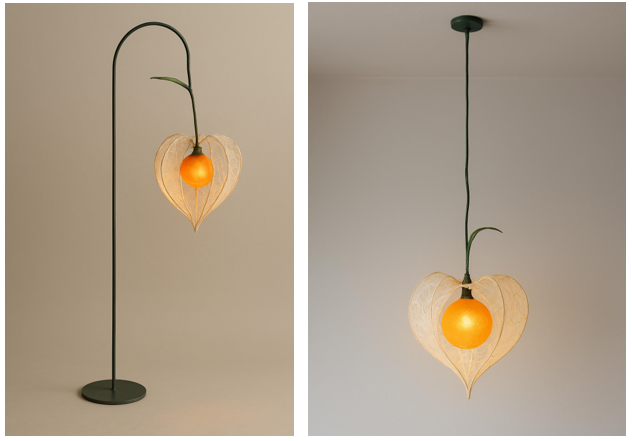 Stevoska’s Solace Glow lamp is inspired by the iris, France’s national flower, and reflects Sericyne’s rich heritage. The design features delicately crafted petals and leaves made from Sericyne silk, with each petal meticulously cut and shaped with wire to create organic forms. A central light source provides a warm, ambient glow, while a wooden base highlights the commitment to natural materials and minimalist aesthetics.