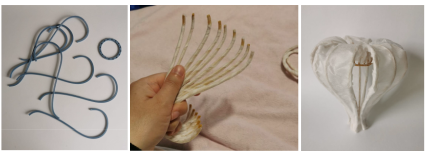 The students created 3D visualisations of the designs in various usage environments, with some also using artificial intelligence tools to develop visualisations of their creative solutions. They further refined their concepts through prototypes made from substitute materials as well as non-woven silk.
