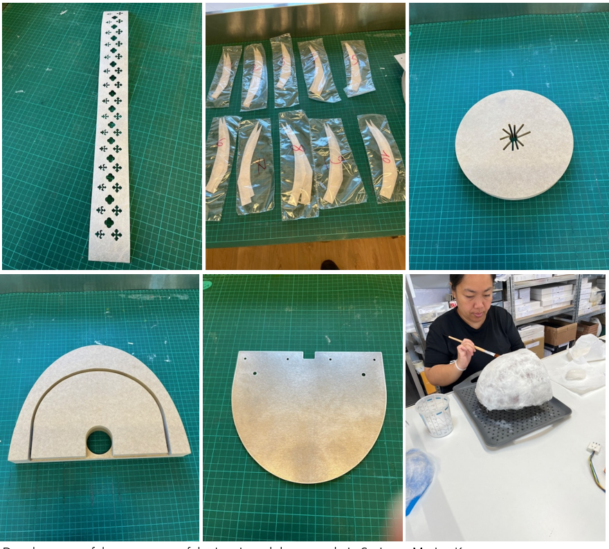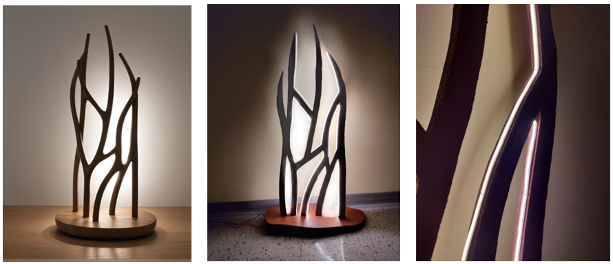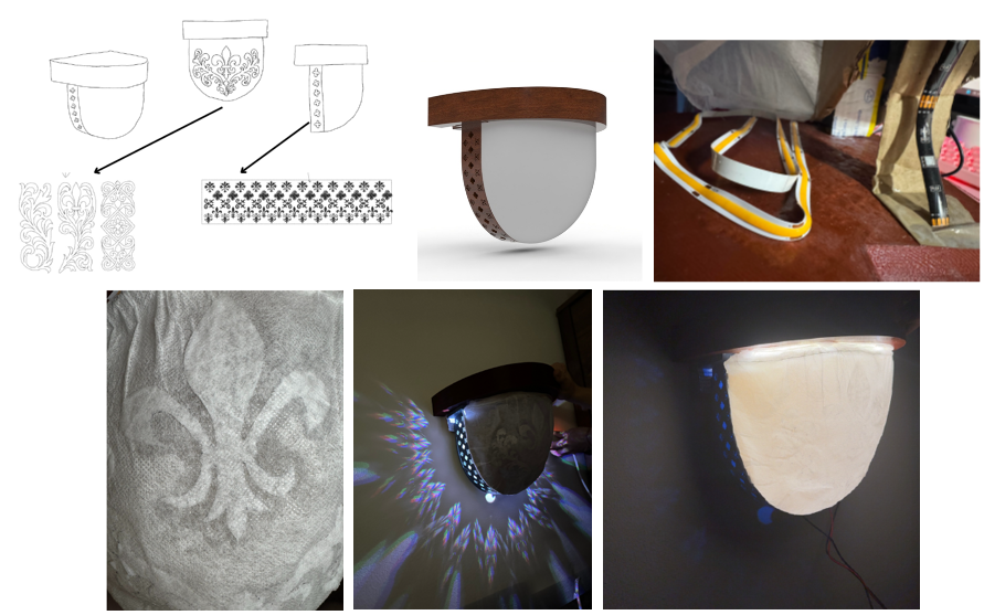 Milenović’s Lumigraph lamp series takes a different approach, celebrating France’s cultural landmarks. Her Staircase Projection Lamp, inspired by the ornamental patterns of Notre-Dame Cathedral, uses layered silk motifs to diffuse light softly, creating mesmerising patterns on surrounding walls. After overcoming initial prototyping challenges—including misaligned 3D-printed components and overly intense lighting—Milenović successfully achieved the gentle, patterned illumination she envisioned.