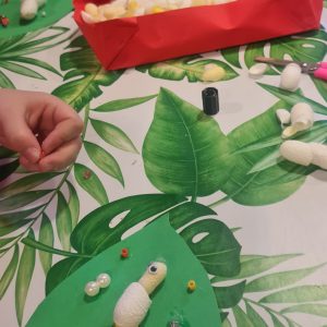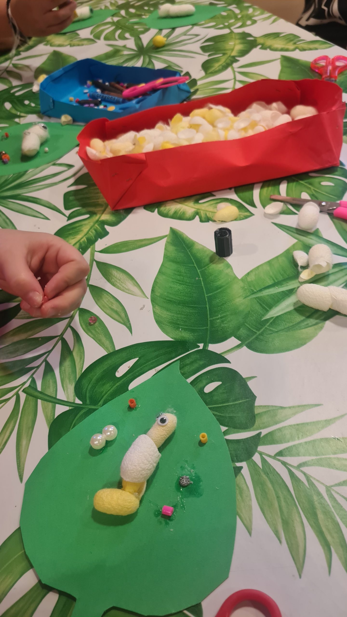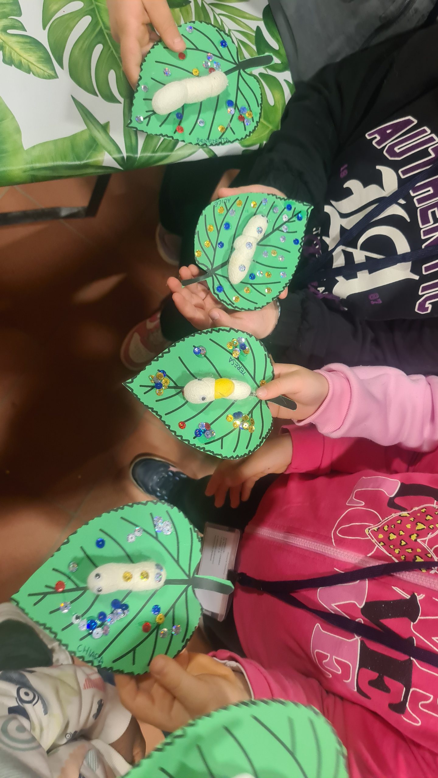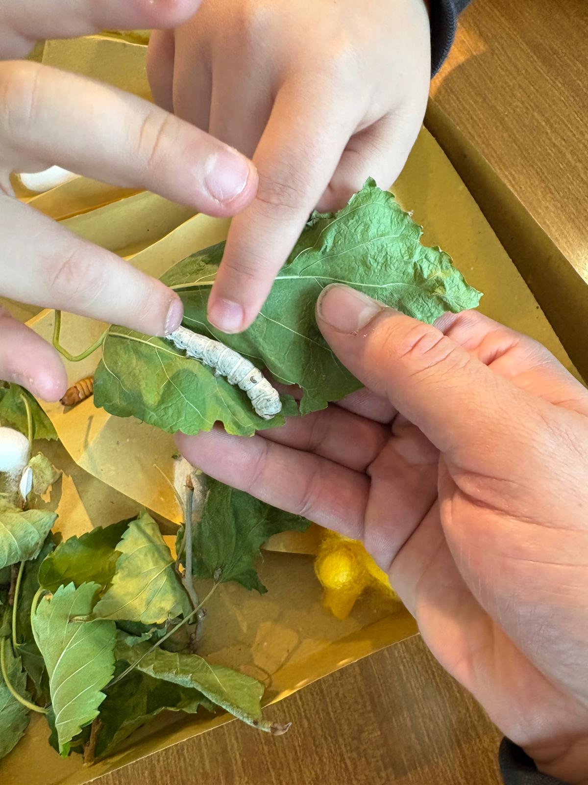 - a creative workshop to make a silkworm on a mulberry leaf, using cardboard, glue, and natural coloured cocoons provided by CREA;