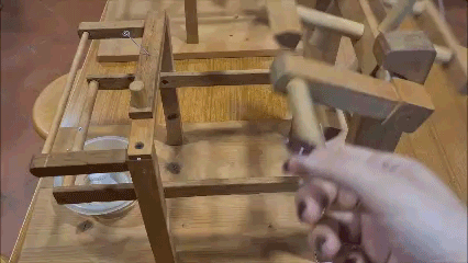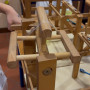 - cocoon reeling using a small wooden reeling machine, producing a skein of silk used to create a bracelet.